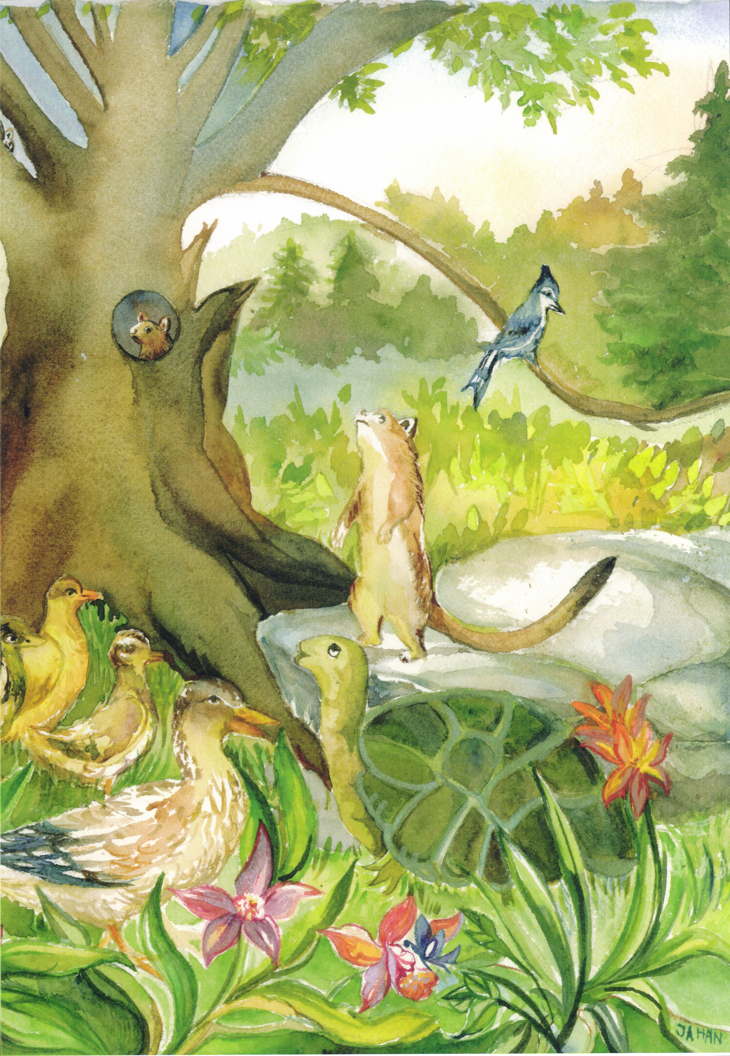It sounded simple enough, and everyone was happy at first, gathering together into his or her families as they spread out around Old Tree. Soon, however, the pleasant tone of friendship vanished like a puddle on a hot, windy day. The animals within each group began to argue over who was best qualified to be in charge of their prized possession. The arguing became shouting, and the quarreling was like nothing John or Helga or their dear ducklings had ever heard before. They wondered if this was the way humans had often felt.
