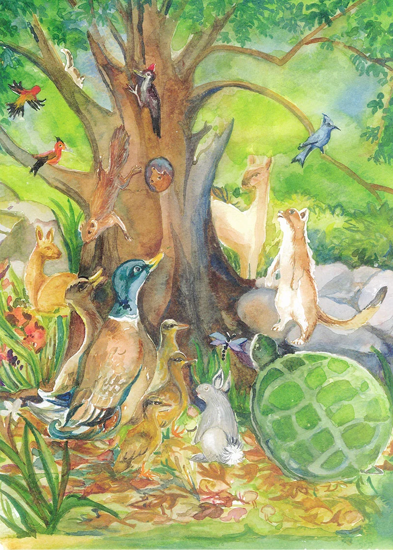 “It would be a pleasure.” Helga came forward and again, using her special beak, displayed page after page of wonderful family portraits. They were all images of Tree’s dearest friends or at least their grandparents or great-grandparents or relatives. Old Tree wondered who had painted them. She knew the artist must have loved the creatures in the wild very much.